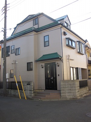 クリーム色の外壁とグリーンの屋根の2色使いが